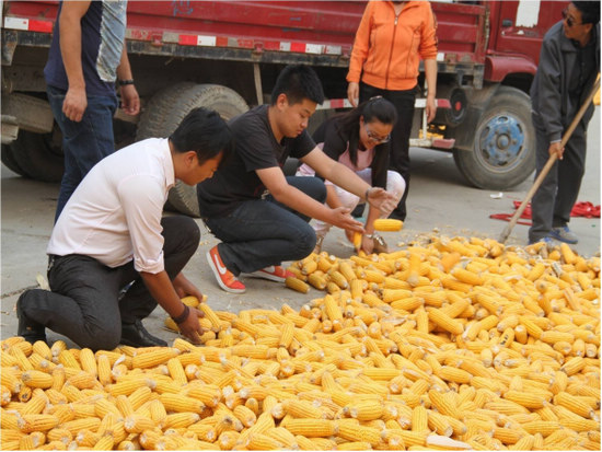 圖:空港新城第五黨支部幫助當地群眾收玉米