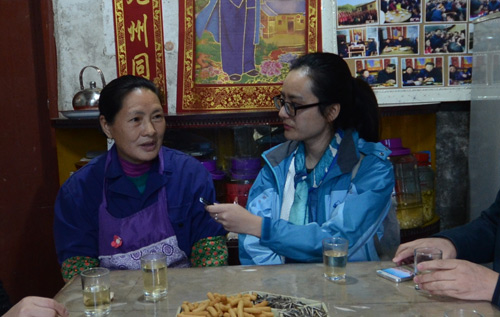 曾與總書記親切交談過村民彭夏英接受記者采訪。(時雨 攝)